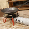 - تتميز اللوحة بـ 6 فتحات حول محيطها، مما يسمح لك بتثبيتها على طاولة موقد خشبية مخصصة لموقد SOTO ST-310 الخاص بك. (انظر الصورة المرفقة للحصول على عينة من التثبيت.)