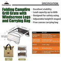 شبكة شواء محمولة مصنوعة من الفولاذ المقاوم للصدأ 304 مع أرجل واقية من الرياح وحقيبة حمل MS-1018