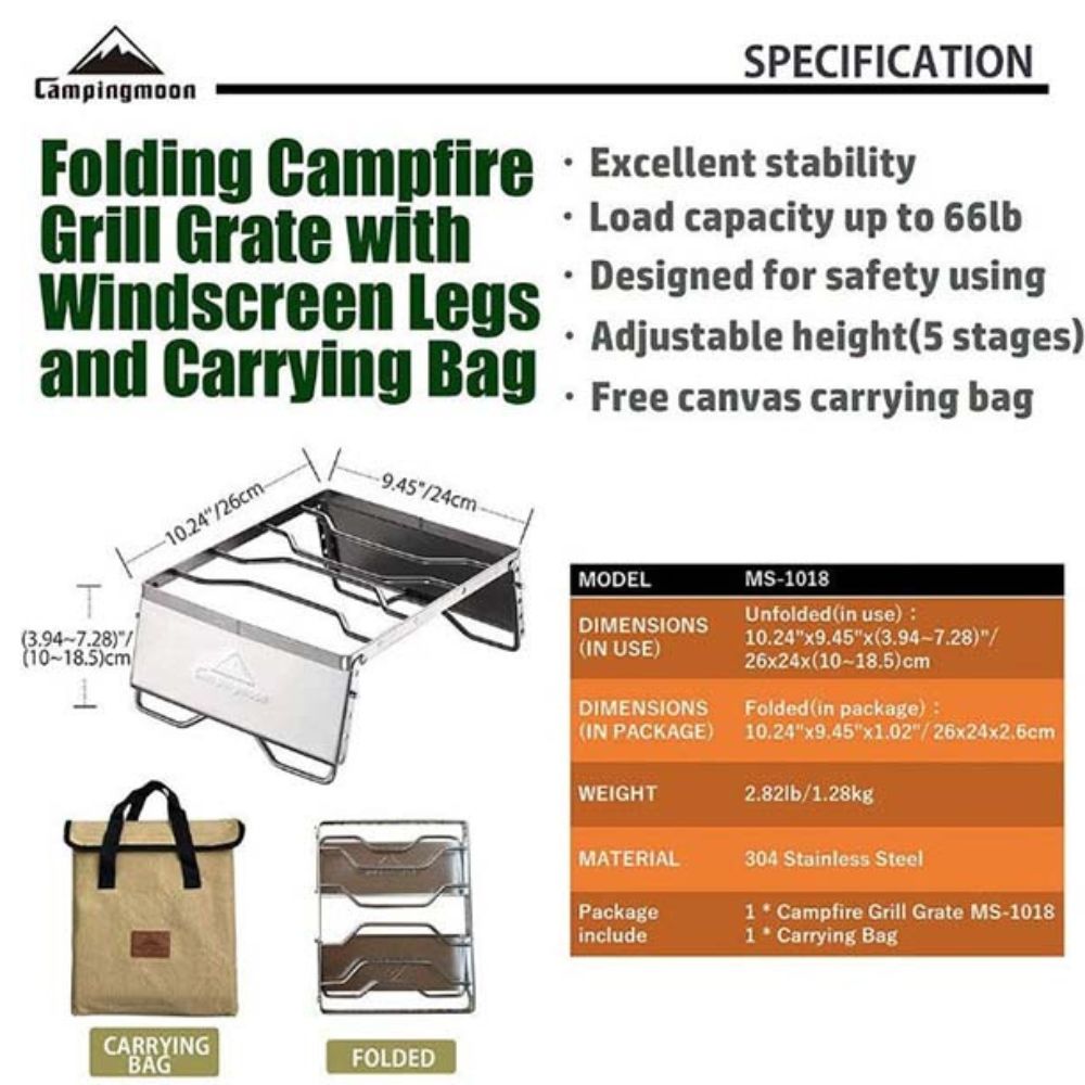 - مع أرجل قابلة للطي وحقيبة حمل، من الملائم حملها للشواء والتخييم وحمل حقائب الظهر والصيد وغيرها من المناسبات الخارجية.
