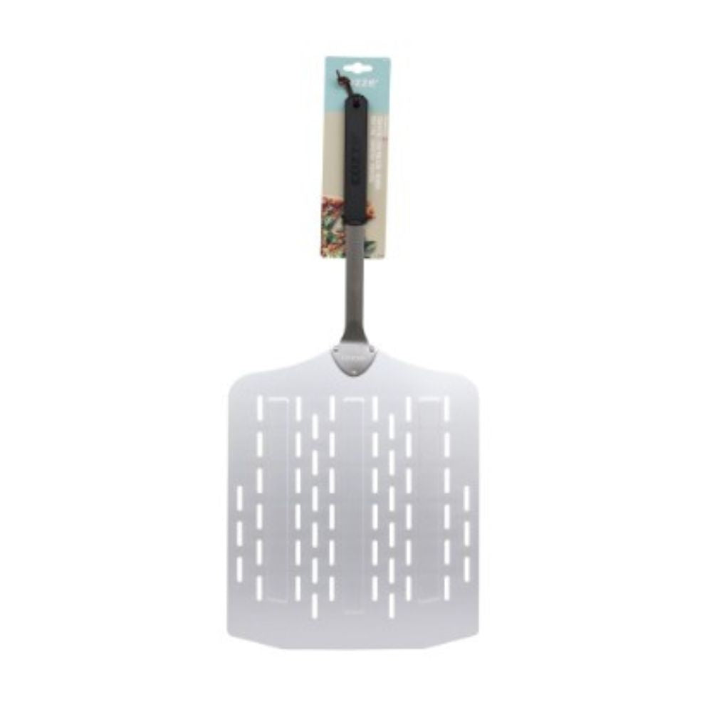 مجرفة البيتزا هي أداة أساسية لخبز البيتزا، مما يضمن بقاء البيتزا سليمة عند وضعها في الفرن وإخراجها منه. تم تصميم هذه المجرفة بفتحات تسمح بغربلة الدقيق الزائد قبل دخول البيتزا إلى الفرن. يساعد هذا في منع الدقيق من الالتصاق بالفرن، مما يؤدي إلى تقليل الدخان وتقليل احتياجات التنظيف والأهم من ذلك، بيتزا مقرمشة تمامًا. توفر القبضة الناعمة التعامل المريح، وتتميز بحزام جلدي لتعليقها بشكل مريح على جانب فرن البيتزا أو الطاولة الخارجية.
