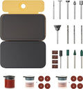 - ملحقات متعددة: 60 نوعًا من الملحقات متعددة الوظائف. 40 × ورق صنفرة، 5 × عجلة طحن ماسية مطلية بالكهرباء (Φ3 مم)، 1 × مركب تلميع راتنج، 4 × شريط صنفرة، 1 × ساق صنفرة (Φ3 مم)، 1 × فرشاة من الفولاذ المقاوم للصدأ، 3 × مثقاب للنجارة (Φ3.2 مم/2.3 مم)، 3 × مطحنة مطاطية مع ساق (Φ3.2 مم)، 2 × صندوق تخزين ملحقات.