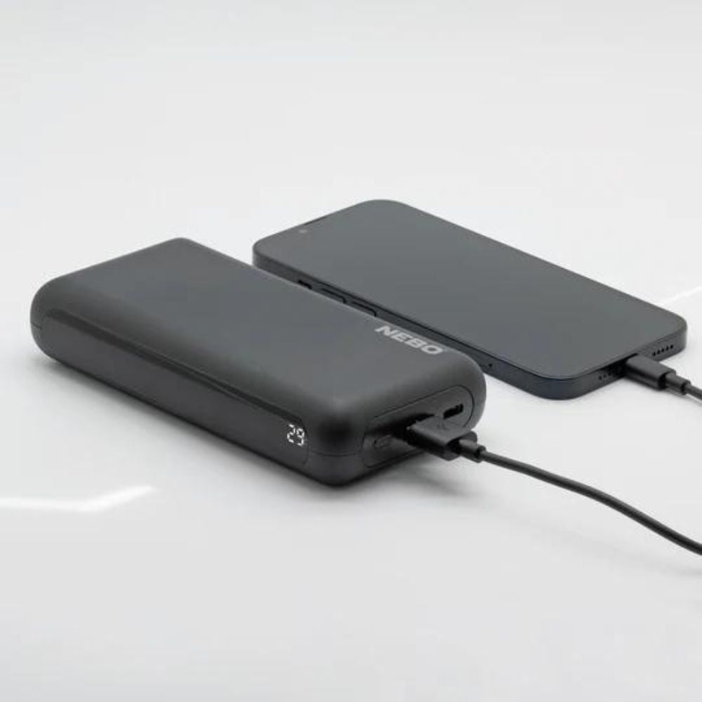 استمتع بأفضل ما في الطاقة المحمولة مع بنك الطاقة NEBO 20,000 مللي أمبير في الساعة. سواء كنت مسافرًا متكررًا أو محترفًا مشغولًا أو مغامرًا أثناء التنقل، فإن بنك الطاقة هذا هو تذكرتك للحصول على طاقة لا تنقطع. ابقَ مشحونًا ومتصلًا وتحكم في الأمور مع NEBO.
