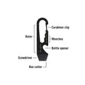 - أداة متعددة بحجم المفتاح يمكن ربطها بسهولة بسلسلة مفاتيح أو حزام موجود