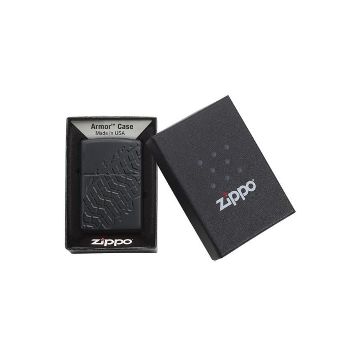 تتميز هذه الولاعة ذات اللون الأسود غير اللامع من Armor ® بنحت عميق لإضفاء انطباع بمسار الإطارات الخشن. تأتي معبأة في صندوق هدايا. للحصول على الأداء الأمثل، املأها بوقود الولاعات الممتاز من Zippo.