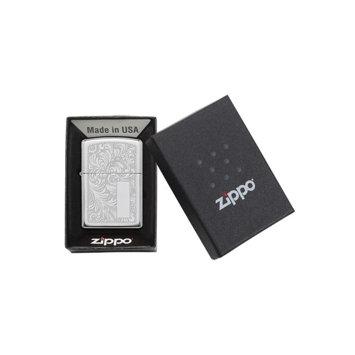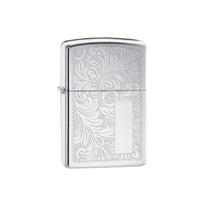 This High Polish Chrome Venetian® lighter is decorated on the front and reverse surfaces. For optimal performance fill with Zippo lighter fuel.