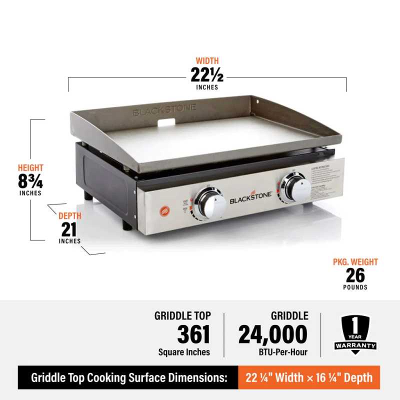 Take outdoor cooking to the next level with the Blackstone 22" Gas Tabletop 2-Burner Griddle and accompanying accessories. Perfect for tailgating, camping, or backyard grilling, this versatile griddle offers exceptional performance, portability, and ease of use.