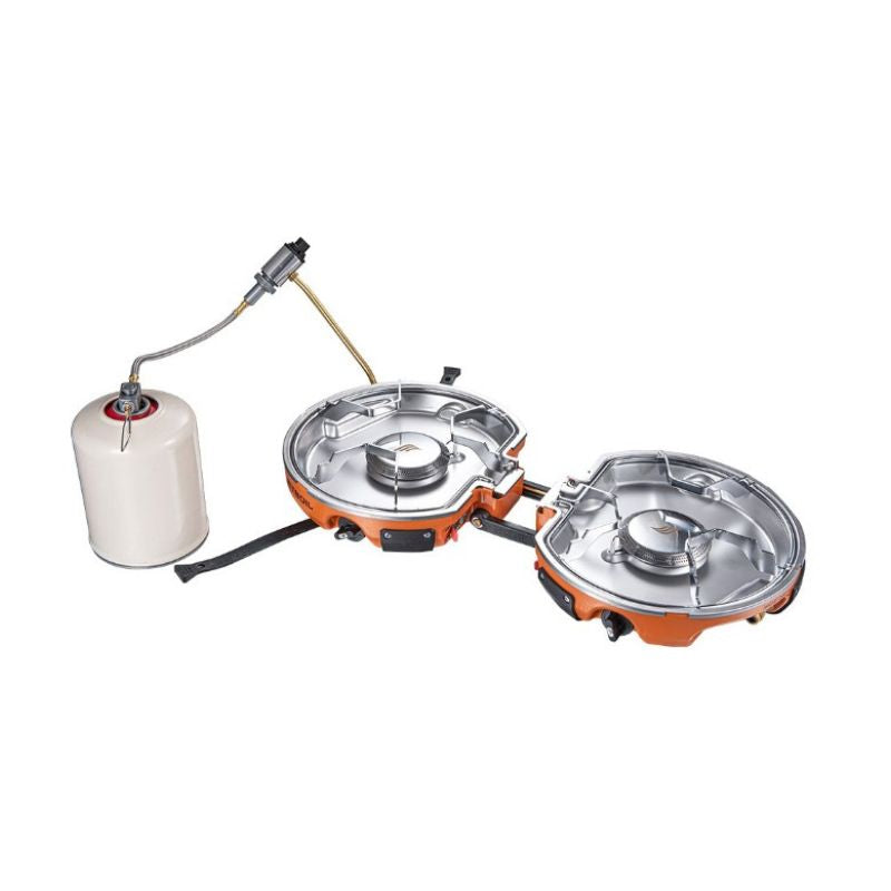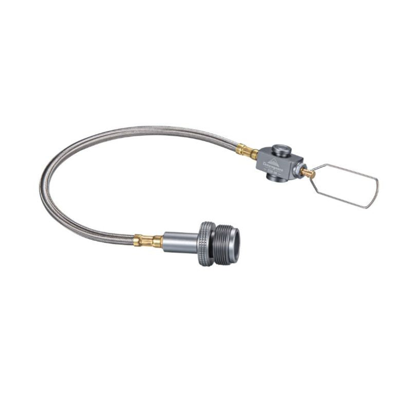 The adapter can connect EN417 Lindal Valve Canister (screw-on type) to propane gas device(burner,stove,lantern,etc..), and it is equiped with regulating valve for gas flow rate adjustment.