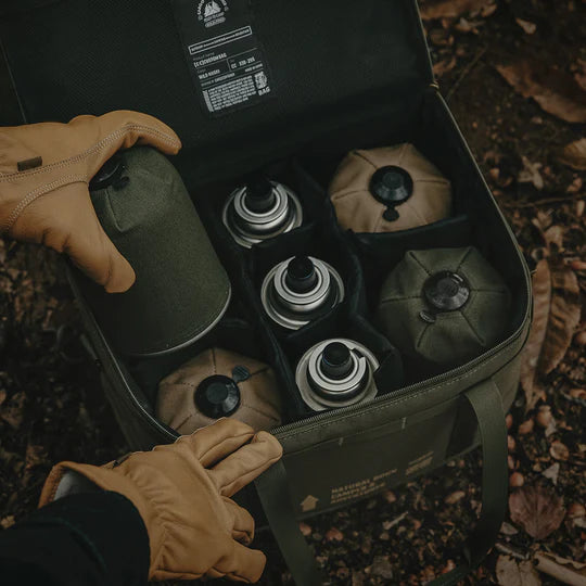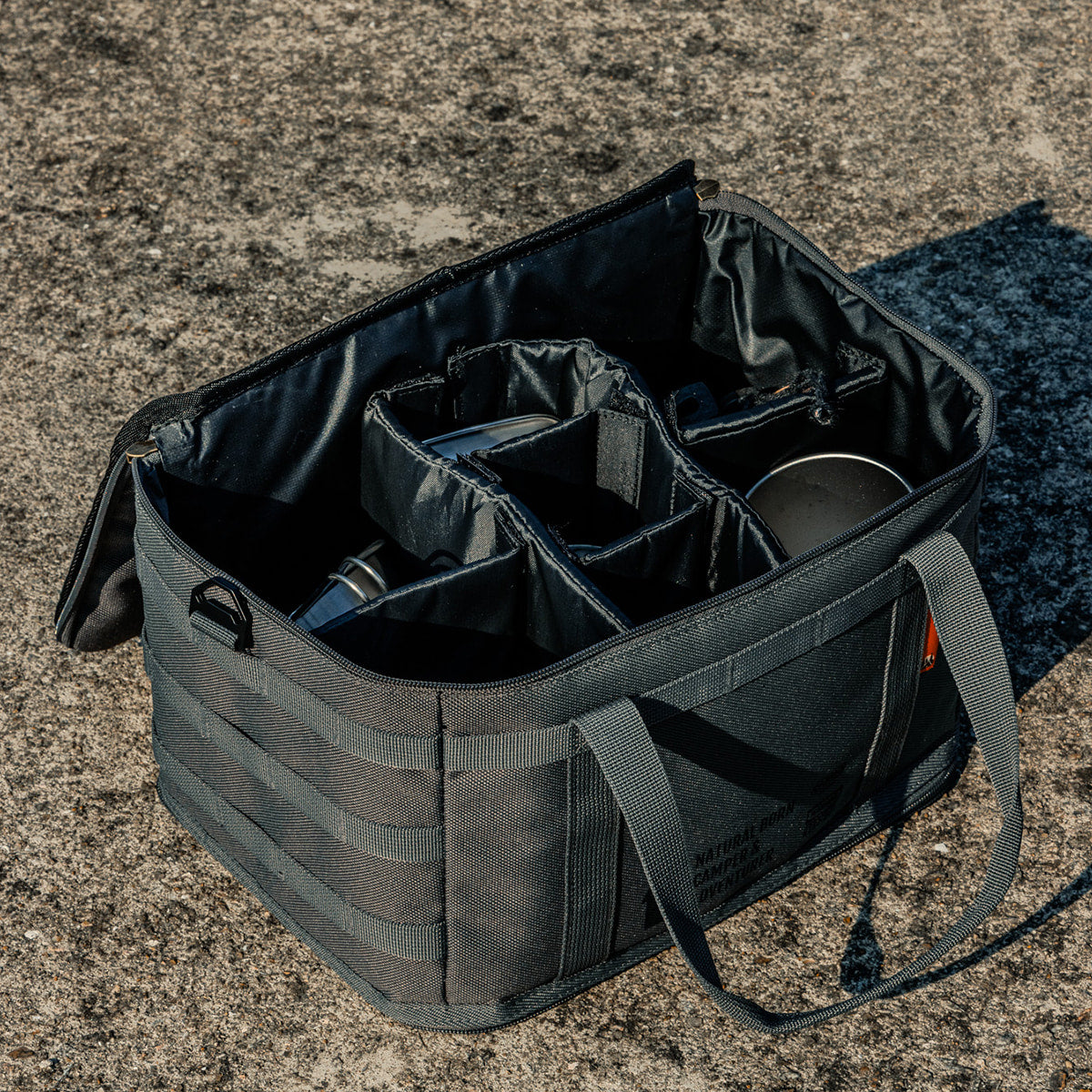 The Cargo Container Custom Bag is designed to optimize storage for various camping supplies, including isobutane gas canisters, butane gas canisters, lanterns, and more. Featuring 6T soft foam padding, it absorbs shock and protects contents on all sides. The bag includes six adjustable compartment dividers, allowing you to customize the interior to securely fit items of different sizes and prevent them from shifting during transport.