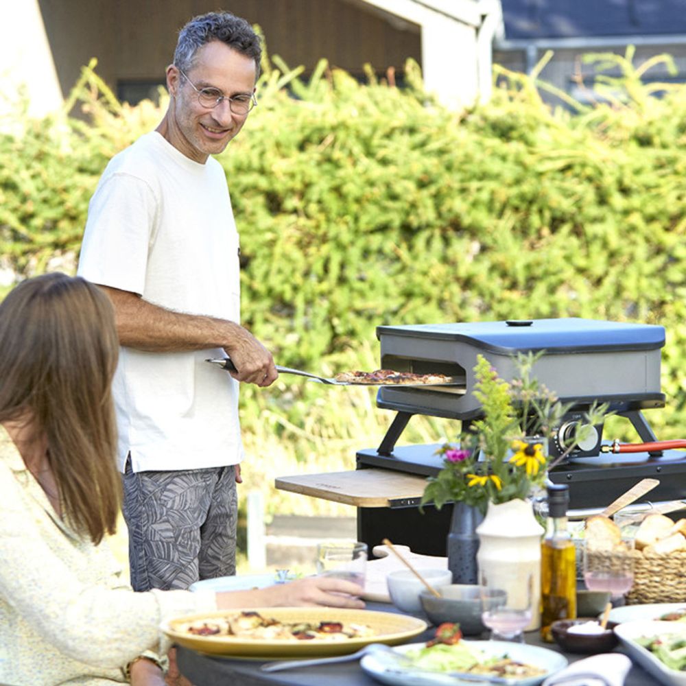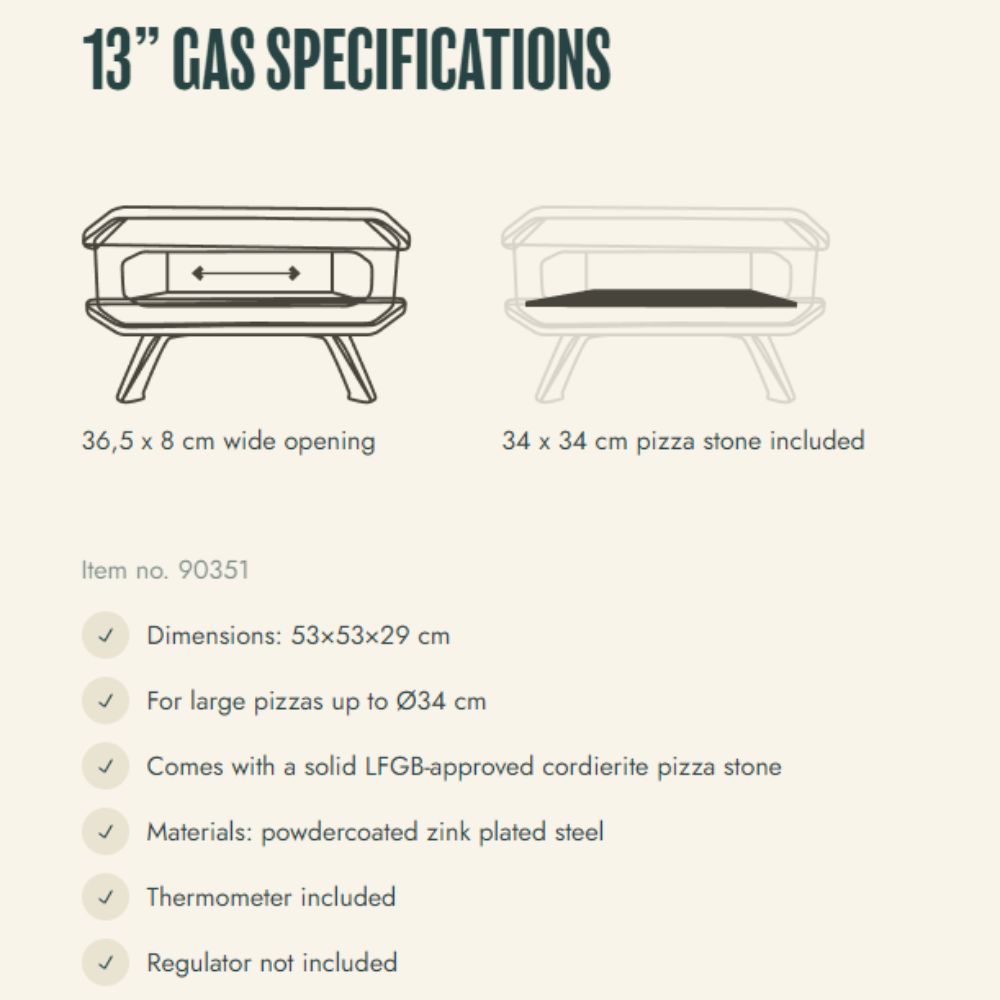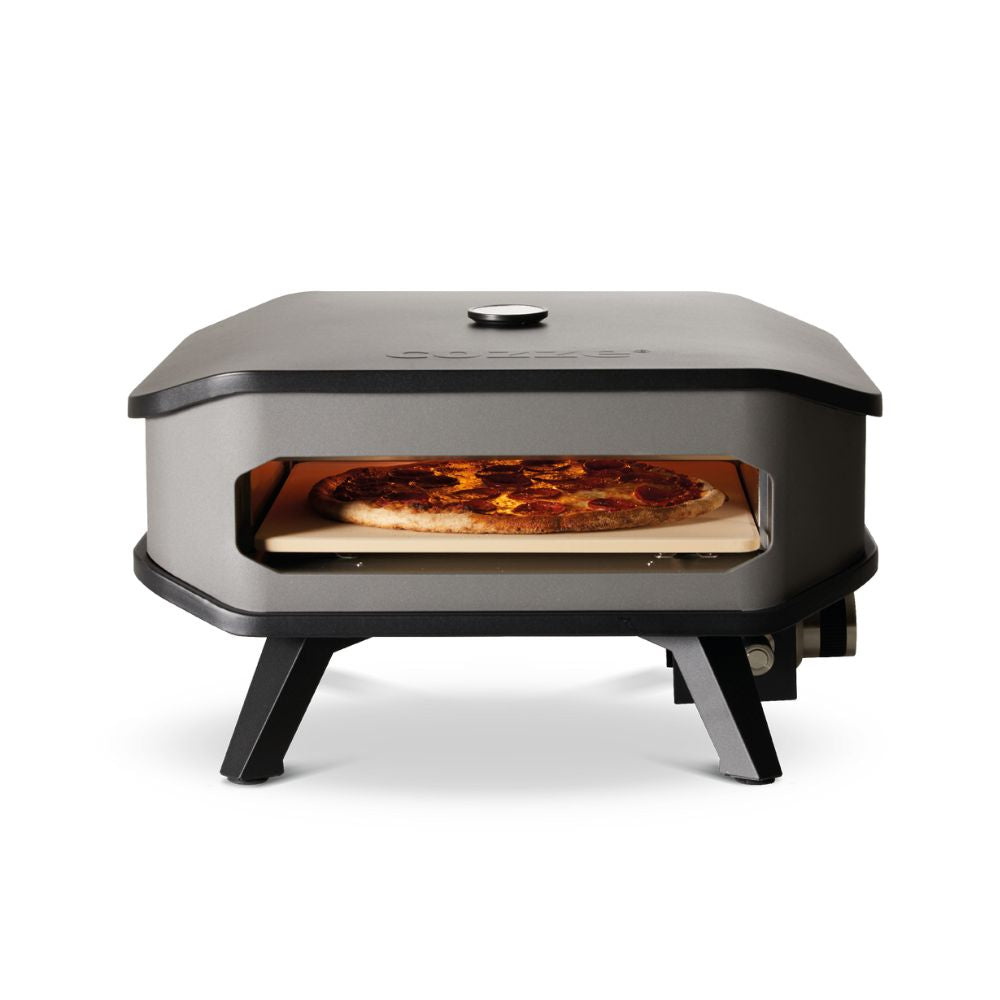 The impressive Cozze 13" Pizza Oven runs on gas, boasting a quick 20-minute heat-up time and 2-minute cooking time per pizza, perfect for serving up delicious pizzas to family and friends in a flash. This portable, elegantly designed oven is perfect for outdoor cooking, whether in your garden, patio, courtyard, balcony, or on your camping trips. It features a top thermometer for easy heat control. Enjoy creating amazing pizzas and more in the great outdoors, a delightful activity for the whole family.
