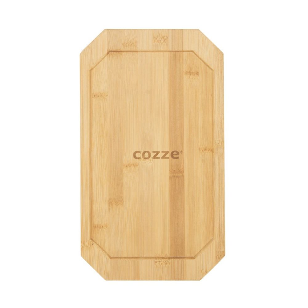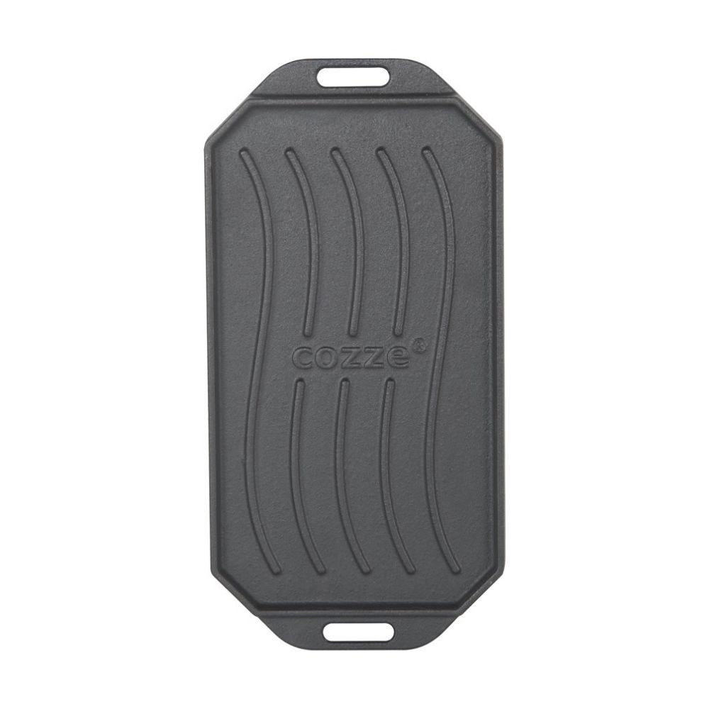 • Cozze ® reversible cast iron pan with wooden tray, measuring 165x330 mm, is ideal for frying various foods.