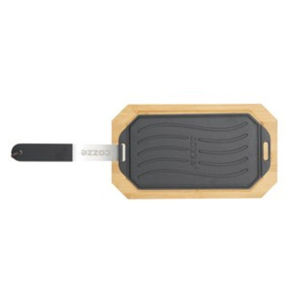 Cozze Reversible Cast Iron Pan with Wooden Tray, Cookware Accessories,    - Outdoor Kuwait