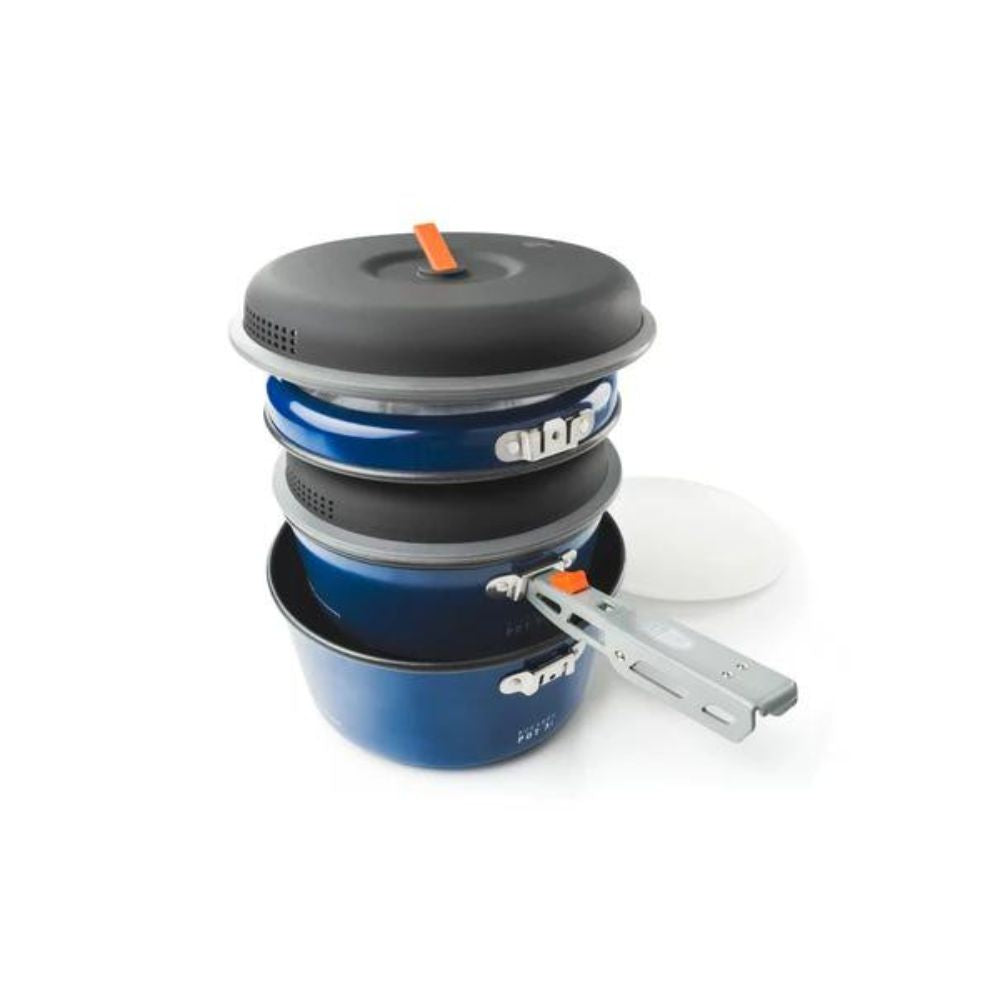 The pot and lid combo are perfect for stovetop use. Every set includes a 2 pots, a frypan, 2 nylon strainer lids, a dished cutting board for a variety of prep duties, a folding pot handle, and a welded stuff sack to keep everything organized and doubles as a sink for washing.