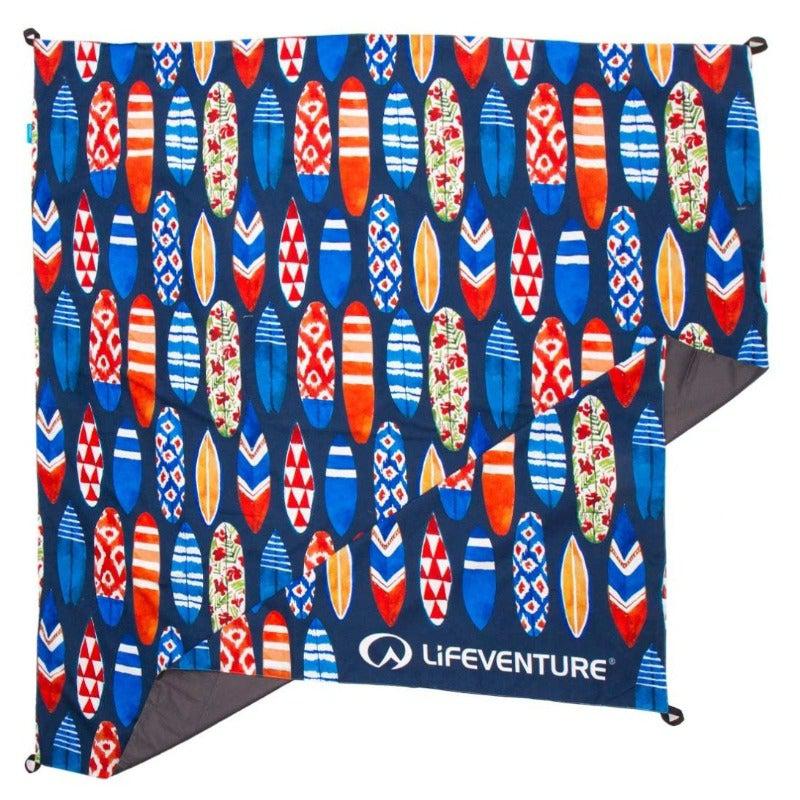 Whether venturing to a beauty spot, climbing a mountain, or catching your breath on the beach, this colorful picnic blanket is a must have accessory for any trip. With its vibrant eye-catching print, this picnic blanket will definitely help you stand out from the crowd. Lightweight, compact, and supplied with its own drawstring carry bag, this picnic blanket allows you to plan your next step or have a picnic. Practical webbing loops for pegging down also feature to ensure you stay grounded on those windy days.