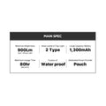 • Equipped with a 1,300 mAh battery, providing up to 40 hours of concentrated light, 45 hours of diffused light, and 80 hours of red light on a 2-hour full charge.