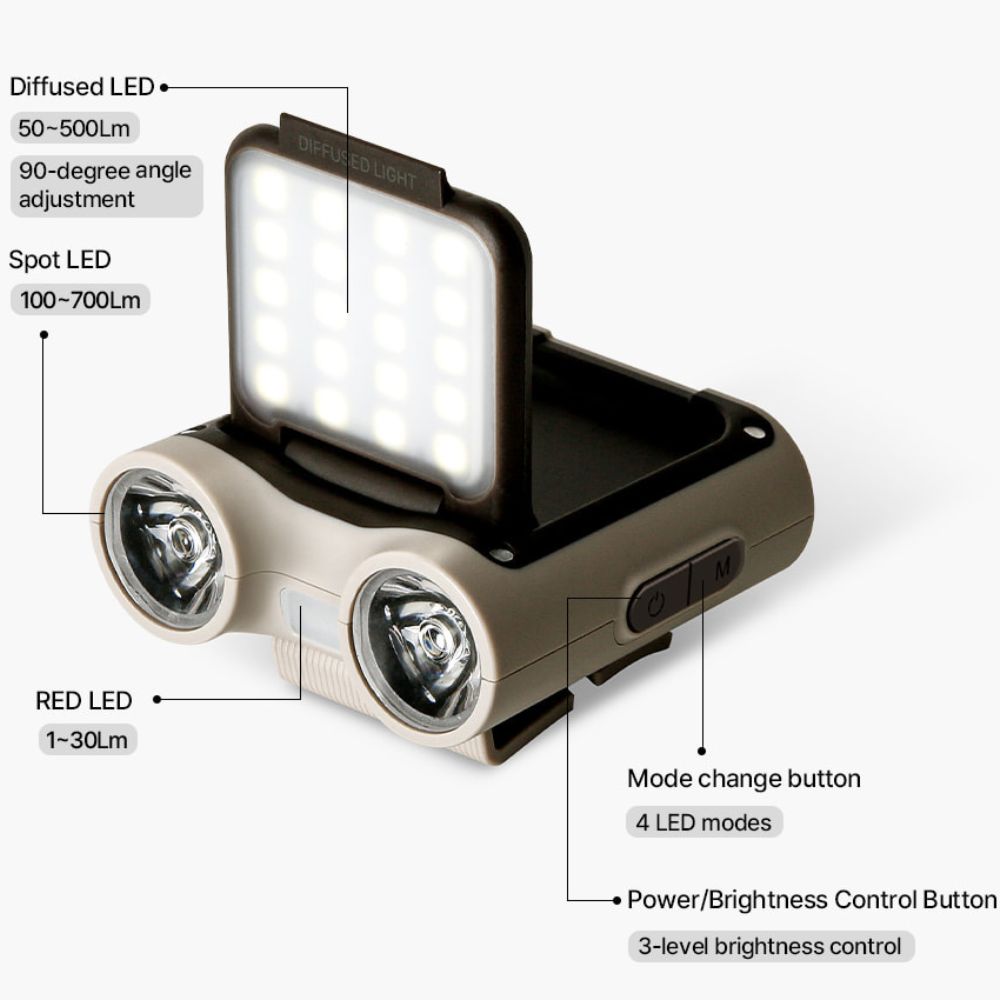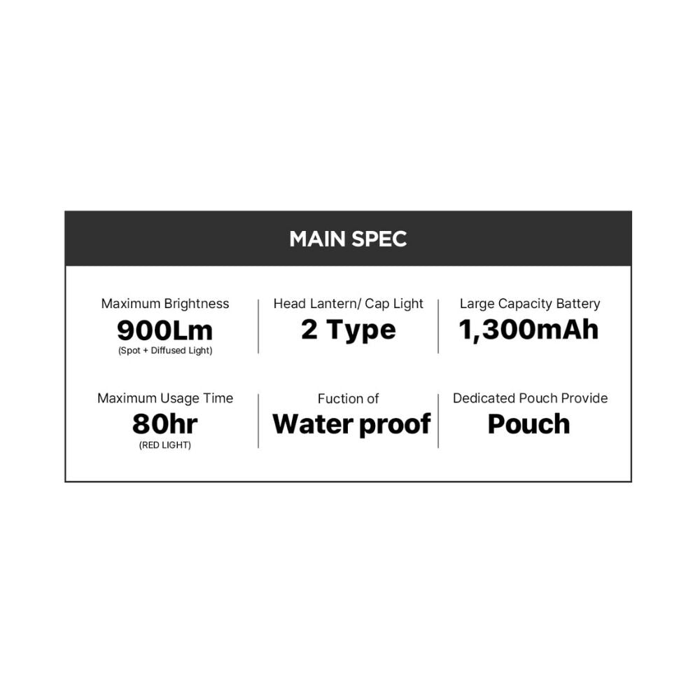 • LUMENA X3 head lantern offers a maximum brightness of 900 Lm with four modes: concentrated light, diffused light, concentrated + diffused light, and red light.