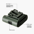 • 180-degree adjustable clip hanger for attachment to headbands, caps, etc., freeing hands during outdoor activities.