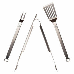 The heavy-duty spatula, tongs, and meat fork are made with 304 stainless steel and have been thoughtfully designed to solve common grilling problems. (Yes, the tongs actually pick up your steak.)