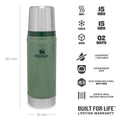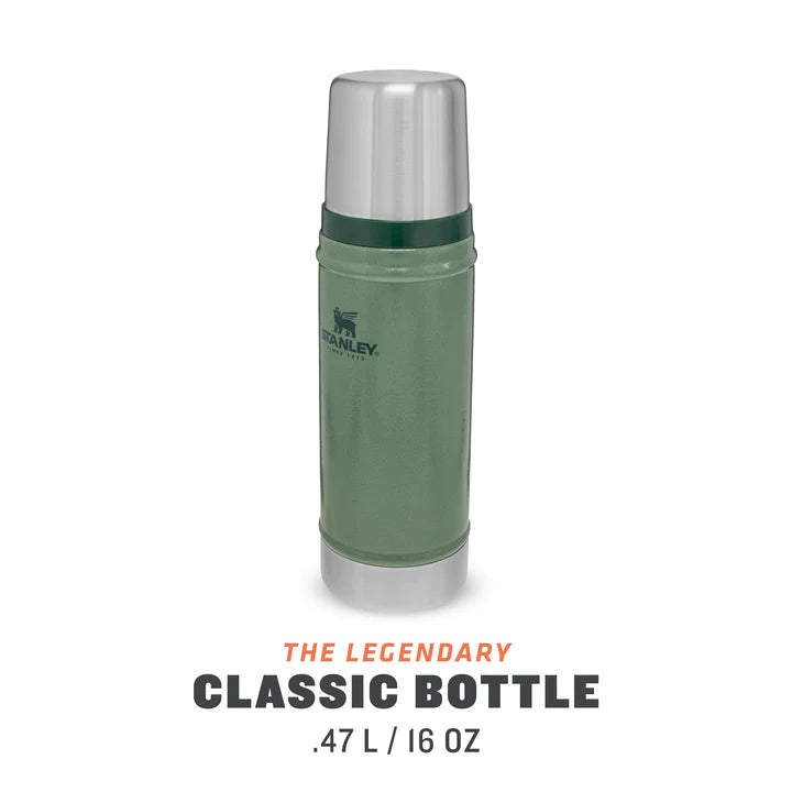 This robust, tank-like bottle is designed to withstand drops, dents, and dings, all while maintaining the temperature of your favorite beverage until you've savored every drop. This renowned stainless steel vacuum bottle can keep 0.47 liters of your preferred drink hot or cold for up to 15 hours. The insulated lid also serves as a convenient drinking cup.