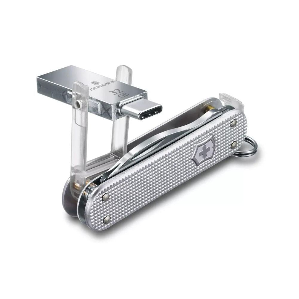 The perfect tech accessory for the business traveler, the Jetsetter@work Alox pocket knife combines six practical functions with a pivoted, removable USB stick. Featuring 32 GB of storage and a multifunctional data carrier, this pocket knife is ready for every digital journey, whether you're at home, in the office, or on the go.