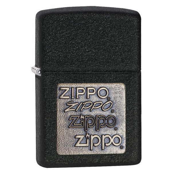 Zippo Black Crackle Silver Zippo Logo Lighter - ZP363