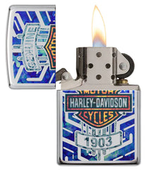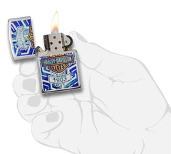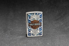 This High Polish Chrome Harley-Davidson® lighter features the classic Harley-Davidson® logo with a unique and colorful twist. Comes packaged in a gift box. For optimal performance, fill with Zippo lighter fuel.