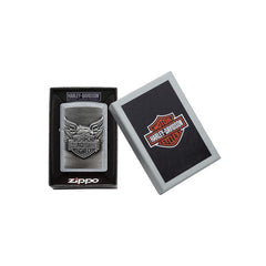 This Street Chrome™ lighter has a Harley-Davidson® emblem attached. Comes packaged in a gift box. For optimal performance, fill with Zippo lighter fuel.