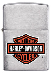 This Harley-Davidson® lighter features the classic orange and black Harley-Davidson® bar and shield logo. Finished on a High Polish Chrome lighter. Comes packaged in a gift box. For optimal performance, fill with Zippo lighter fuel.