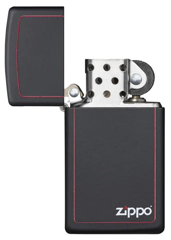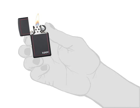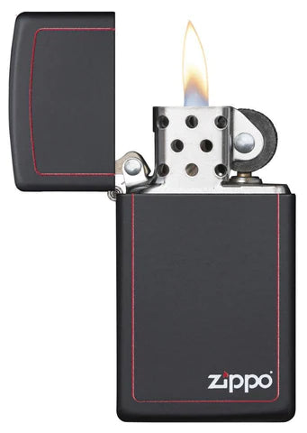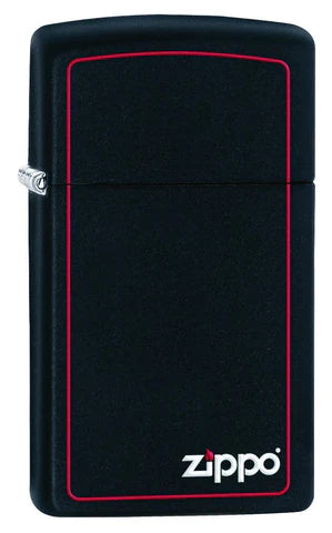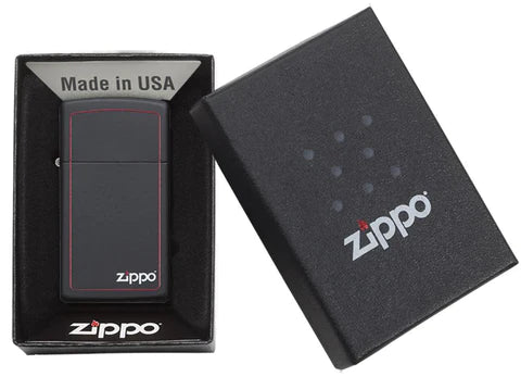 A smaller version of our classic windproof lighter. This Slim® black matte lighter with red border is easy to fit right in your pocket, bag, or purse. This lighter is also available in a Classic case. Comes packaged in a gift box. For optimal performance fill with Zippo lighter fuel.